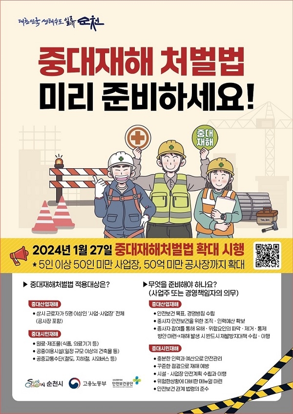 또한 시는 영세․중소기업의 열악한 여건을 감안해 여수고용노동지청과 협업을 통한 중대재해처벌법 교육, 홍보 등도 병행할 계획이다.