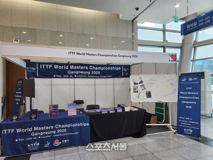 BNK부산은행 2024 부산세계탁구선수권대회 개막 뒤 벡스코 미디어센터 옆에 ‘2026 월드 마스터스 챔피언십’ 유치를 위한 홍보 부스도 운영되고 있다.