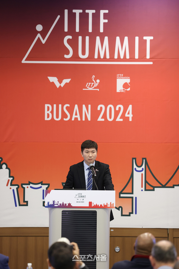 22일 오전 부산 해운대구 벡스코 컨벤션홀에서 진행된 2024 국제탁구연맹(ITTF) 서밋(SUMMIT)의 ‘유치 신청도시 PPT’에는 2024 부산세계탁구선수권대회 공동조직위원장이기도 한 유승민 회장이 직접 나서 연맹 관계자들을 설득했다.