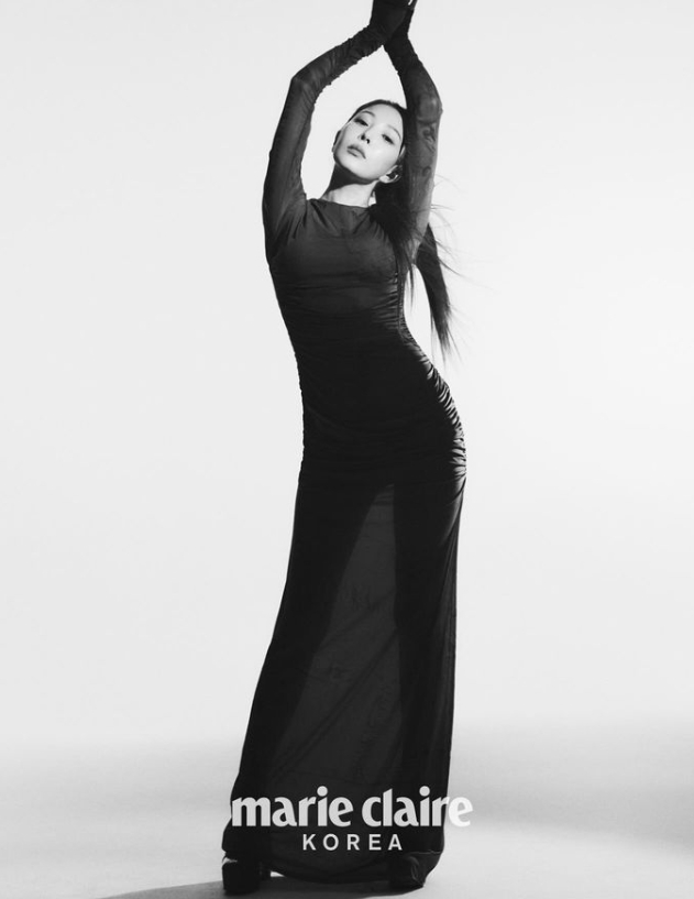 이어진 화보에서는 전신을 길게 감은 밀착 원피스로 농염한 분위기를 풍긴다. 푸르스름한 조명 아래 또렷한 이목구비가 빛나는 사진에서는 몽환적인 매력을 발산했다.