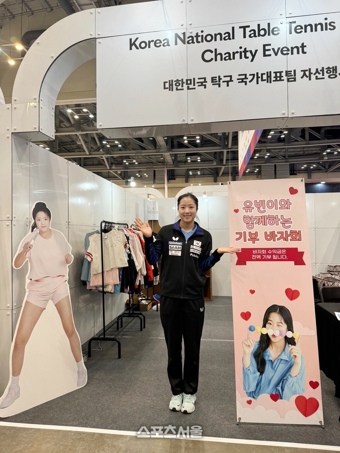 기부 바자회는 지난 16일~17일 부산 해운대구 벡스코 컨벤션센터 특설대회장 내 팬존(FAN ZONE) 부스에서 진행됐고, 신유빈 부모는 딸이 직접 사용했던 러버 200장과 의류를 판매했다.