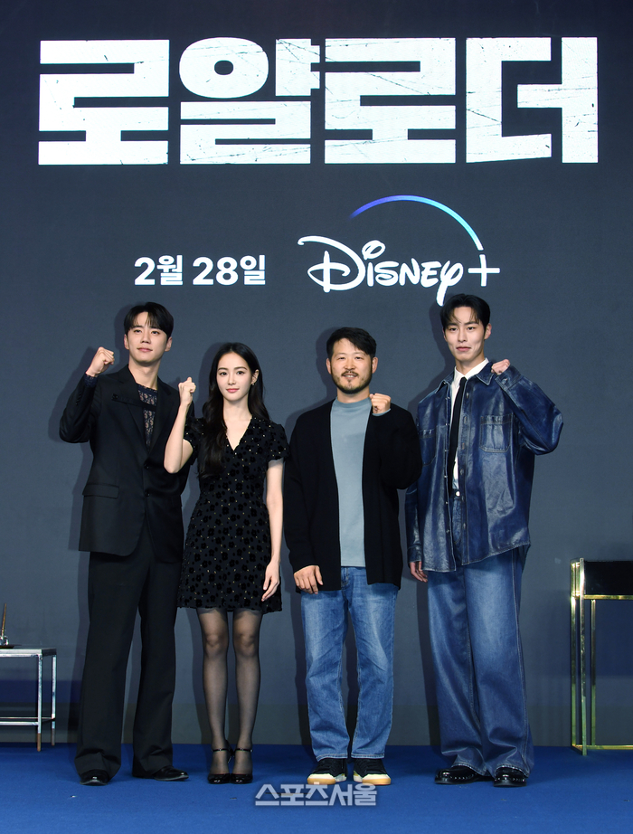 26일 서울 종로구 JW 메리어트 동대문 스퀘어 호텔에서 진행된 디즈니+ 오리지널 ‘로얄로더’ 제작발표회에서 주연 배우들과 민연홍 감독이 취재진을 향해 포즈를 취하고 있다. 왼쪽부터 배우 이준영, 홍수주, 민연홍 감독, 배우 이재욱. ‘로얄로더’는 대한민국 최고 재벌가 왕좌를 차지하기 위한 마이너리거들의 이야기를 그린 드라마로 배우 이재욱, 이준영, 홍수주 등이 출연하며 민연홍 감독이 연출을 맡았다. 2024. 2. 26. 박진업 기자 upandup@sportsseoul.com