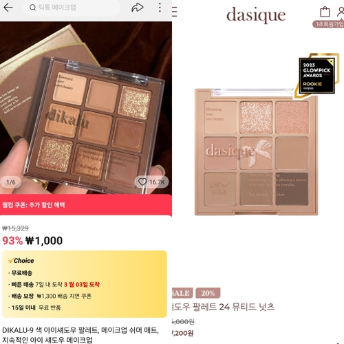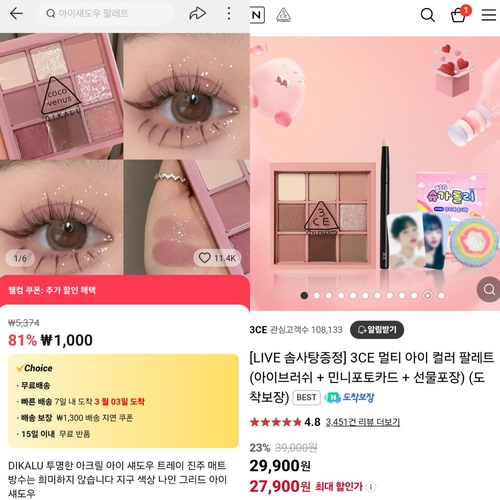 실제 알리익스프레스에서 판매 중인 중저가 화장품을 살펴보니, 국내 화장품 브랜드들과 복제된 수준의 초저가 가품들이 판매되고 있다. 대표적으로 3CE, 릴리바이레드, 데이지크, 롬앤 등이 있었다.