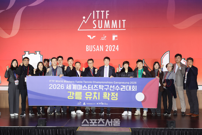 26일 오후 부산 해운대구 벡스코 컨벤션센터에서 열린 2024년 국제탁구연맹(ITTF·회장 페트라 쇠링) 서밋(SUMMIT·이사회 및 집행위원회)에서 투표로 강원도 강릉시가 ‘2026년 ITTF 월드 마스터스 챔피언십’ 개최지로 선정된 것이다.