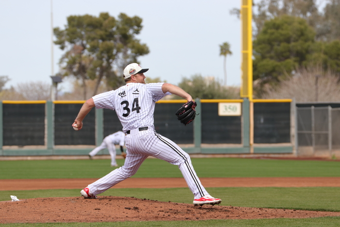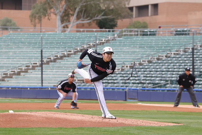 [스포츠서울 | 투산=윤세호 기자] 최고 구위는 아니었다. 2022년 4월6일 고척돔에서 최고 구속 149㎞ 속구를 앞세워 6이닝 1실점 호투했던 모습. 혹은 지난해 11월 한국시리즈(KS)에 앞선 청백전서 주전 타선을 구위로 압도했던 모습은 아니었다. 그래도 계획대로 단계를 밟아가고 있다는 데에서 의미를 둘 수 있다. LG 선발진 마지막 퍼즐 손주영(26)이 올해 실전 시작점을 찍었다.