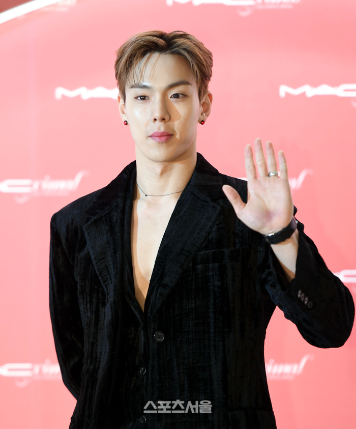 몬스타엑스 셔누가 28일 서울 잠실 롯데월드몰에서 열린 맥 맥시멀 매트 립스틱 팝업 스토어 오픈 포토월 행사에 참석해 포즈를 취하고 있다. 2024. 2. 28. 최승섭기자 thunder@sportsseoul.com
