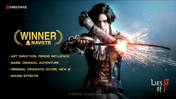 네오위즈 ‘P의 거짓’은 부문별 최고 게임 중 ▲아트 디렉션 부문 ‘시대적 배경’ ▲게임 부문 ‘오리지널 어드벤처’ ▲오리지널 드라마틱 스코어 부문 ‘신규 IP’ ▲사운드 이펙트 등 4개 부문을 석권했다. 게임의 배경이 되는 벨에포크 시대의 완벽한 재현은 물론, 세밀한 묘사와 미학적인 디테일, 뛰어난 수준의 음악 등 게임의 예술적 가치를 인정받은 셈.
