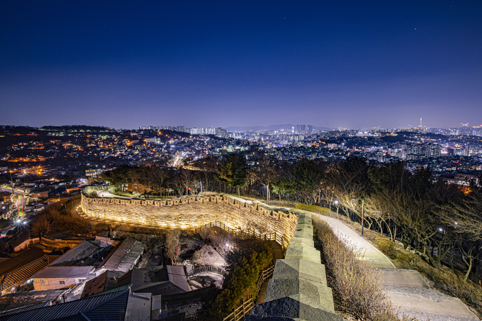 성벽을 따라 걸으면 곡장 전망대에 이르는데 북쪽 북한산을 시작으로 동쪽으로는 롯데타워가, 남쪽으로는 남산 일대의 풍경이 파노라마처럼 펼쳐진다.