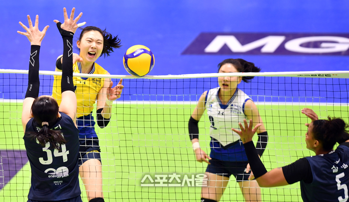 모마와 실바의 장군멍군이었다. 현대건설은 중앙을 적극 활용하면서 세트 첫 역전에 성공했다. 실바를 차단하면서 2점차 리드를 잡은 현대건설이 축포를 터뜨렸다. kkang@sportsseoul.com
