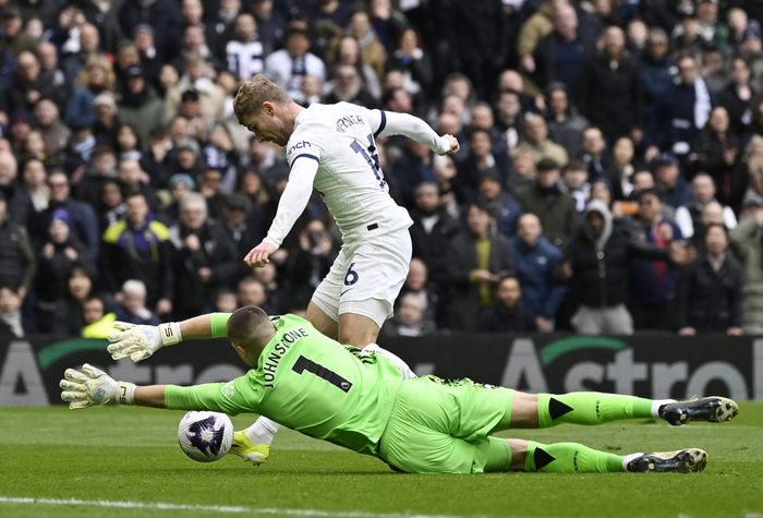 토트넘은 전반 16분 손흥민이 로드리고 벤탄쿠르의 전진 패스 때 수비 뒷공간을 훔쳐 뛰었다. 그러나 상대 골키퍼 샘 존스톤이 재빠르게 튀어나와 공을 제어했다.