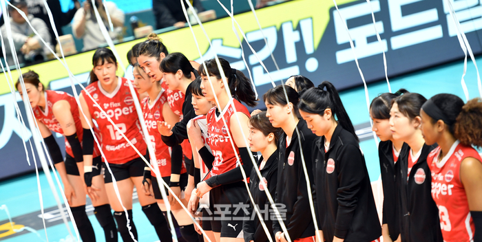 페퍼 박정아 등 선수들이 3일 장충체육관에서 열린 2023-2024 V리그 여자부 GS칼텍스와 페퍼저축은행의 경기에서 0-3으로 패한 후 아윕게 발걸음을 옮기고 있다. 2024.3.3. 장충 | 강영조 기자 kanjo@sportsseoul.com