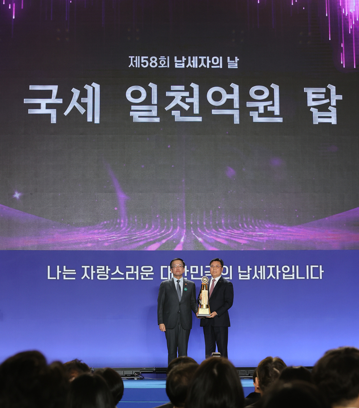 호반건설은 4일 서울 동대문 DDP에서 열린 ‘제58회 납세자의 날’ 기념식에서 ‘국세 1천억원 탑’을 수상했다. 호반건설은 건설경기 침체 등 어려운 경제 상황 속에서도 성실 납부에 노력했다. 지난 2019년 국세 1천억원 탑에 이어 두번째 수상이다.