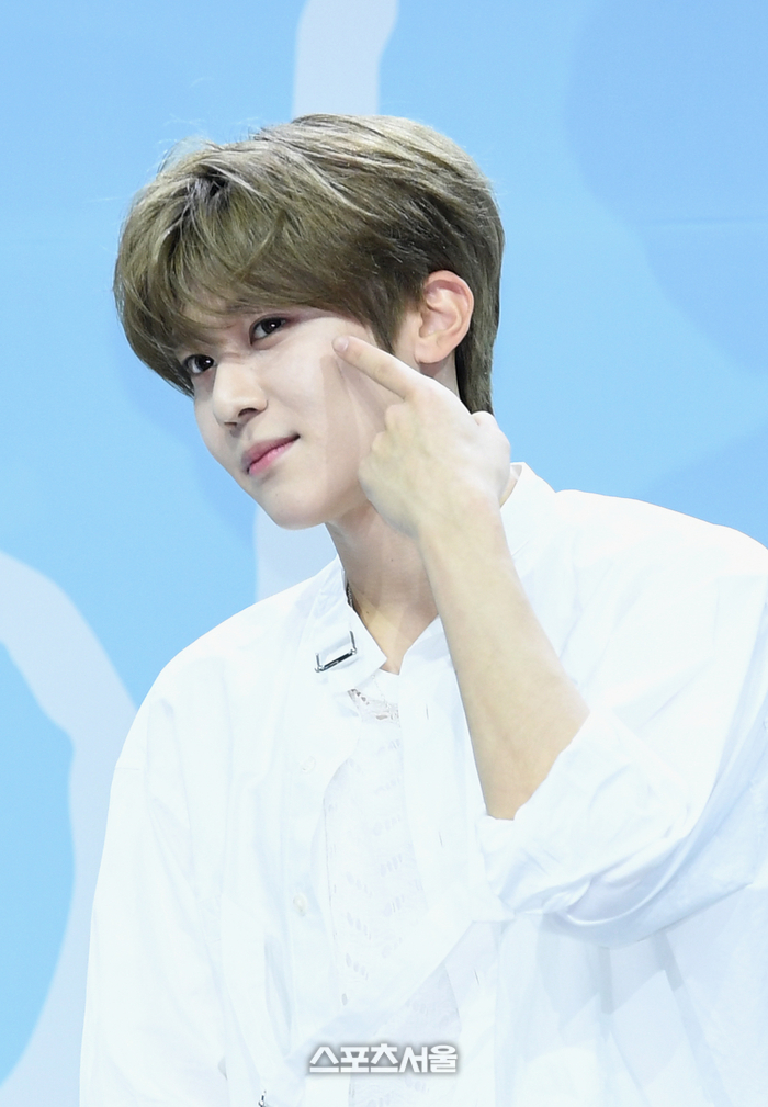 NCT WISH(엔시티 위시) 시온이 4일 서울 용산구 블루스퀘어에서 진행된 데뷔 기념 미디어 쇼케이스에서 취재진을 향해 포즈를 취하고 있다. 2024. 3. 4. 박진업 기자 upandup@sportsseoul.com