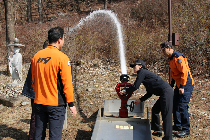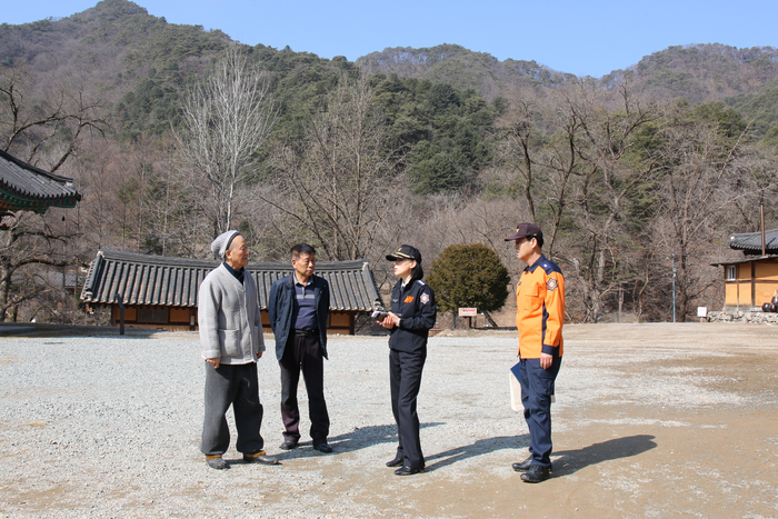 봄철 대비 전통사찰 화재예방을 위한 선제적 대응을 위해 추진된 이번 현장지도는 산불이 발생했을 경우를 대비해 임도 등 소방차량의 진입 가능 여부를 확인하며 재난 발생 시 소방력의 신속하고 원활한 투입ㆍ운영과 산불 진화 우선순위 확인, 작전계획 등을 검토했다.