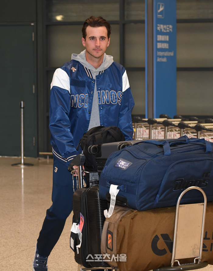 NC 다이노스의 새 외국인 투수 카일 하트가 5일 오전 미국 애리조나에서 스프링캠프를 마치고 인천국제공항을 통해 입국하고 있다. 2024. 3. 5. 인천국제공항 | 박진업 기자 upandup@sportsseoul.com