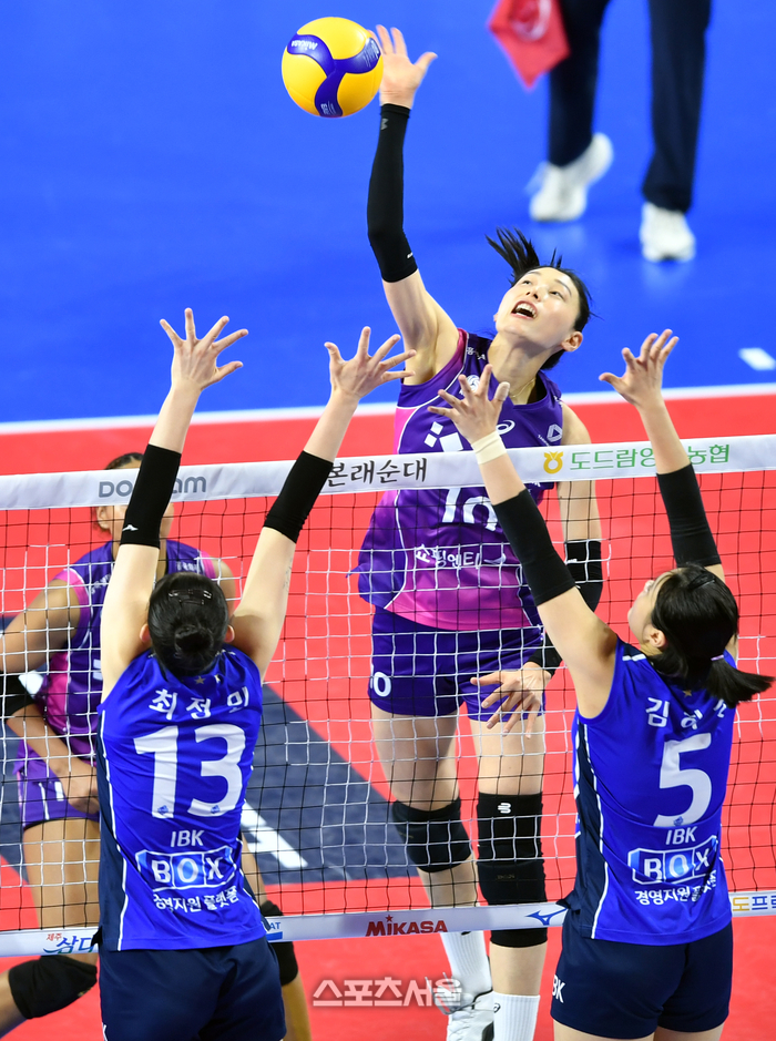 흥국 김연경이 5일 화성실내체육관에서 열린 2023-2024 V리그 여자부 IBK기업은행과 흥국생명의 경기에서 IBK 블로킹을 따돌리며 강타를 터트리고 있다. 2024.3.6. 화성 | 강영조 기자 kanjo@sportsseoul.com