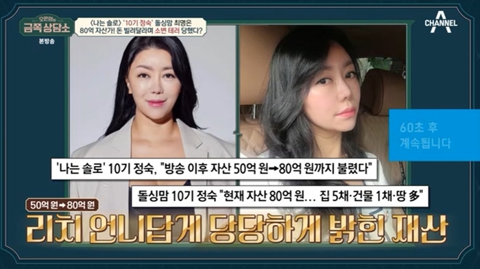 최명은은 “80억 원 이상은 있고. 집 5채 있고 땅은 8개 정도 있다”고 솔직하게 말했다.