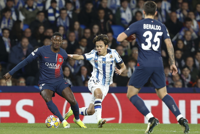 [스포츠서울 | 정다워 기자] 파리생제르맹(PSG)의 이강인이 동갑내기 라이벌 쿠보 다케후사(레알 소시에다드) 앞에서 홀로 웃었다.