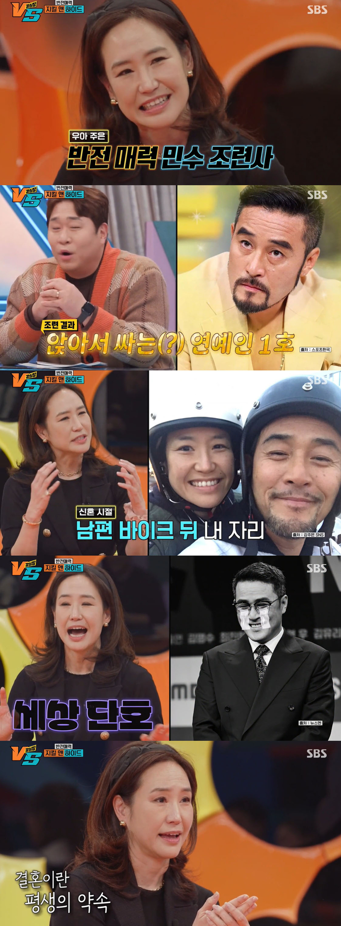 강주은은 “민수씨가 ‘이게 나의 개성이고 아티스트는 함부로 못한다. 이게 나다’라고 하더라. 결국 5억원을 날렸다”면서 “더 속상한 건 일주일쯤 지나고 나니까 ‘그 제안이 아직 유효할까’라더라”면서 뒤늦게 아쉬워한 최민수의 이야기를 전해 웃음을 자아냈다.