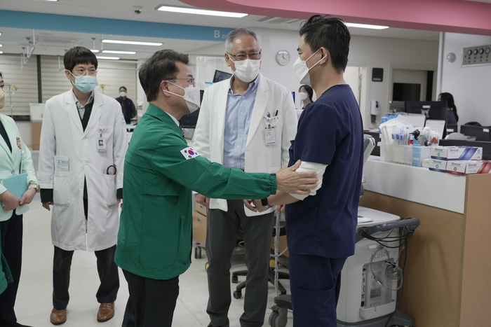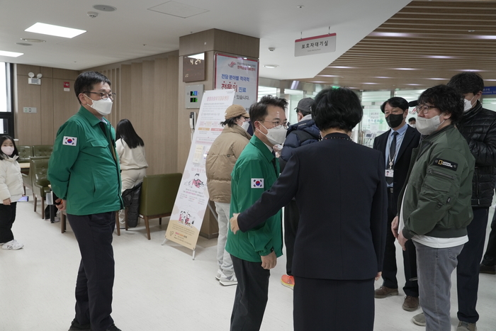 [스포츠서울ㅣ춘천=김기원기자] 육동한 춘천시장은 6일 강원대학교병원과 한림대학교춘천성심병원을 찾아 의료계 집단행동 대비 비상진료체계를 확인하고 미이탈 의료진을 격려했다.