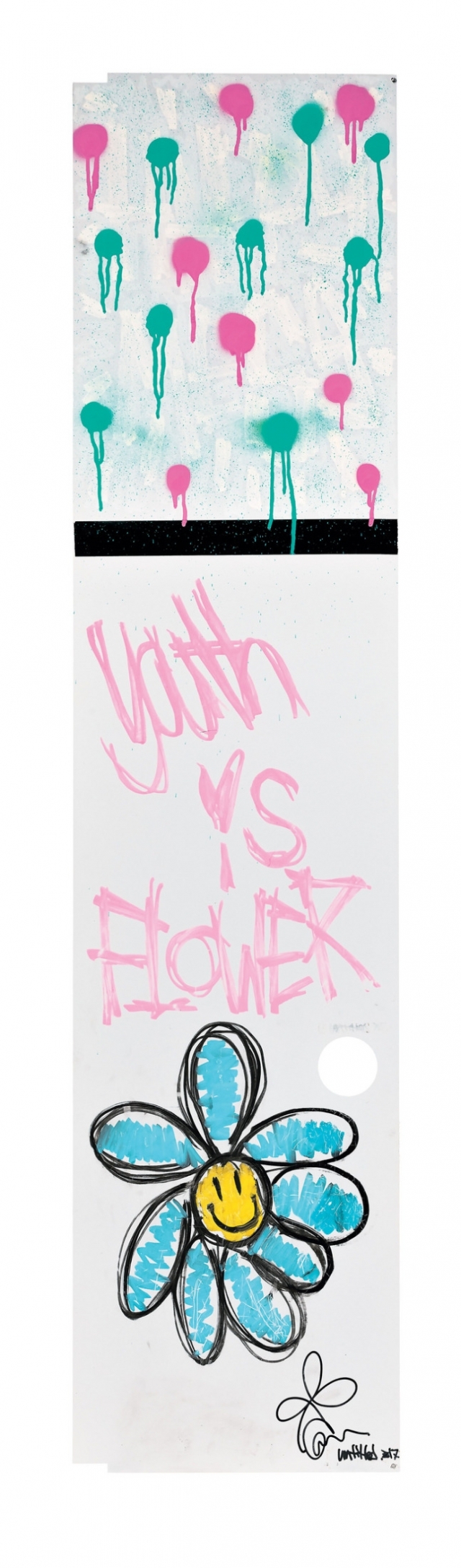 이 작품은 지난 2017년에 제작된 작품으로 철제 패널 위에 스프레이와 마커를 뿌리는 방식으로 그려졌다. 직접 제작한 순수미술 작품이 경매에 나온 건 이번이 처음이다.