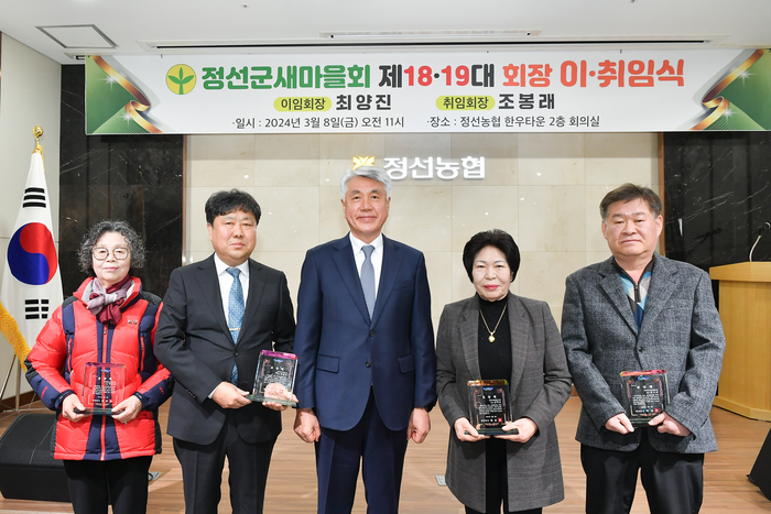 이날 이취임식에서는 조봉래 정선군새마을회장, 정재교 새마을지도자정선군협의회장, 나숙자 정선군새마을부녀회장, 안기수 새마을문고정선군지부회장이 제19대 회장단으로 각각 취임했다.