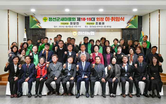 [스포츠서울ㅣ김기원기자] 정선군새마을회(회장 조봉래)는 8일 정선농협 한우타운 세미나실에서 정선군새마을회 회장단 및 새마을 가족 등 80명이 참석한 가운데 회장단 이취임식을 개최했다.