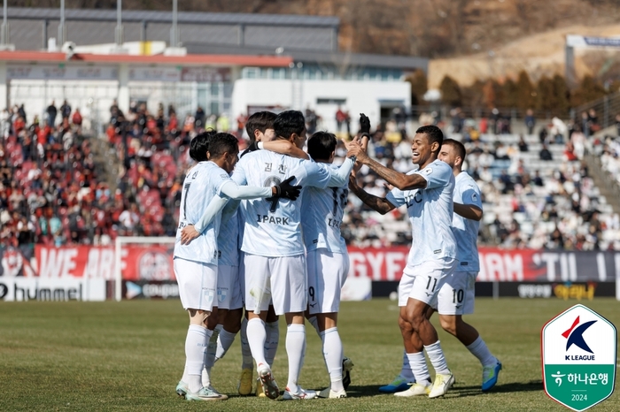 수원FC 김은중 감독은 이번시즌 지휘봉을 잡은 후 치른 첫 경기서 경기 종료 직전 터진 이승우의 페널티킥 결승골에 힘입어 첫 승을 신고했다. 김 감독은 “첫 경기가 중요했는데, 승리로 자신감을 갖게 됐다”면서 뒤꿈치 통증으로 대기 명단에 이름 올린 이승우를 전략적으로 활용하겠다고 예고했다.