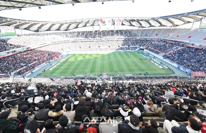 수많은 축구 팬들이 10일 서울월드컵경기장에서 열리는 하나원큐 K리그1 FC서울과 인천 유나이티드의 경기를 관전하고 있다. 프리미어리그 맨체스터 유나이티드와 잉글랜드 국가대표 제시 린가드의 영입으로 FC서울의 홈 개막전에는 예약 관중만 4만 명 이상의 축구팬이 몰렸다. 2024. 3. 10. 박진업 기자 upandup@sportsseoul.com