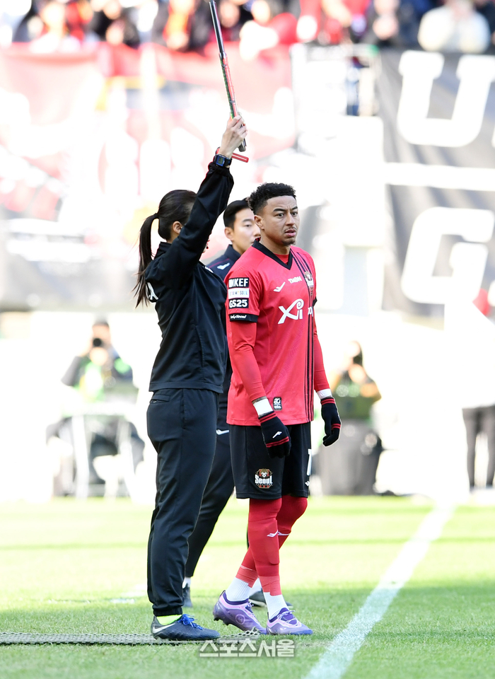 FC서울의 제시 린가드가 10일 서울월드컵경기장에서 열리는 하나원큐 K리그1 인천 유나이티드의 경기에서 시게히로 대신 그라운드에 투입되고 있다. 프리미어리그 맨체스터 유나이티드와 잉글랜드 국가대표 제시 린가드의 영입으로 FC서울의 홈 개막전에는 예약 관중만 4만 명 이상의 축구팬이 몰렸다. 2024. 3. 10. 박진업 기자 upandup@sportsseoul.com