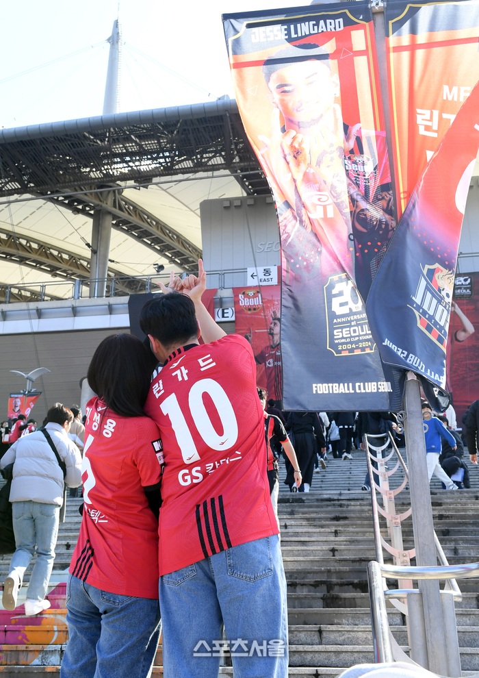 축구팬들이 10일 서울월드컵경기장에서 열리는 하나원큐 K리그1 FC서울과 인천 유나이티드의 경기를 관전하기 위해 경기장으로 입장하고 있다. 프리미어리그 맨체스터 유나이티드와 잉글랜드 국가대표 제시 린가드의 영입으로 FC서울의 홈 개막전에는 예약 관중만 4만 명 이상의 축구팬이 몰렸다. 2024. 3. 10. 박진업 기자 upandup@sportsseoul.com
