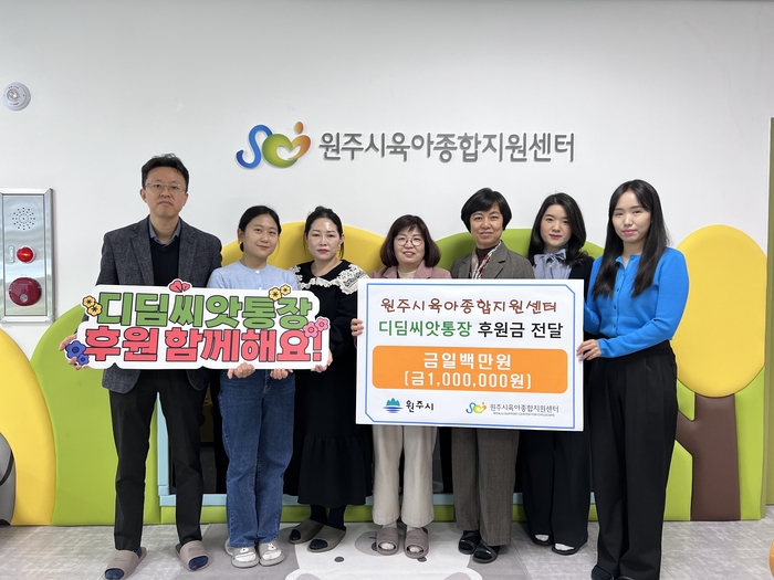 원주시육아종합지원센터 구성원들의 자발적 성금으로 마련된 이번 후원금은 취약계층 아동의 자립지원과 사회 진출을 돕고자 디딤씨앗통장을 통해 요보호 아동 100명에게 1만 원씩 전달된다.