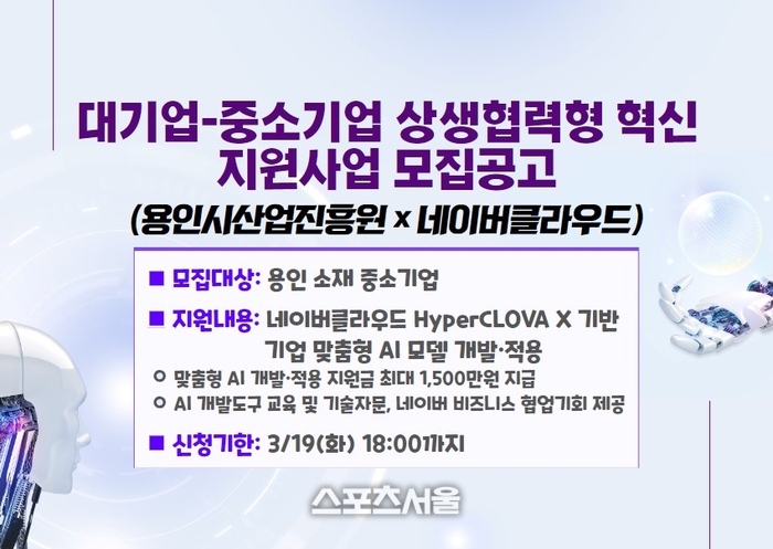 올해 처음 추진하는 이 사업은 인공지능(AI)·클라우드 분야 전문기업인 ‘네이버클라우드’와 함께 AI 분야의 기업을 지원할 예정으로, 양 기관은 용인시 인공지능 산업 발전과 기업지원 협력을 위해 지난 2월 23일 업무협약을 체결했다.