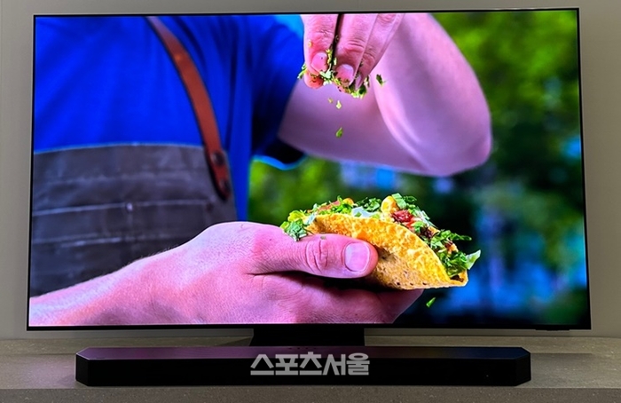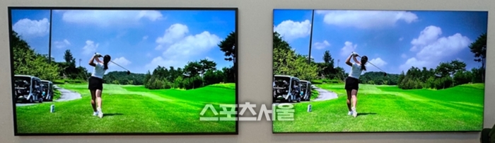 또한 AI 화질 업스케일링으로 스포츠, 게임 등과 같이 역동적인 장면을 끊김 없이 선명하게 구현한다. AI가 학습된 종목별 움직임을 입력해 빈 공간에 추가 프레임을 삽입하는 원리다. 즉, 공을 하나의 장면으로 표현해 모션을 강화한 것.