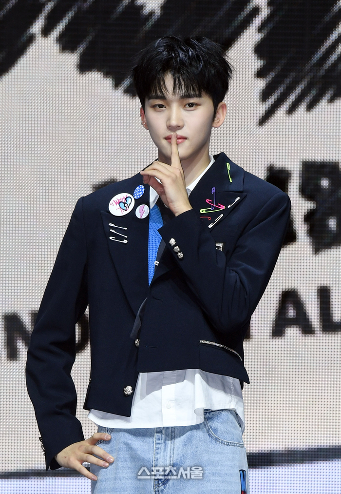 루네이트(LUN8) 도현이 13일 서울 광진구 예스24 라이브홀에서 진행된 두 번째 미니앨범 ‘BUFF’ 발매 기념 미디어 쇼케이스에서 취재진을 향해 포즈를 취하고 있다. 2024. 3. 13. 박진업 기자 upandup@sportsseoul.com