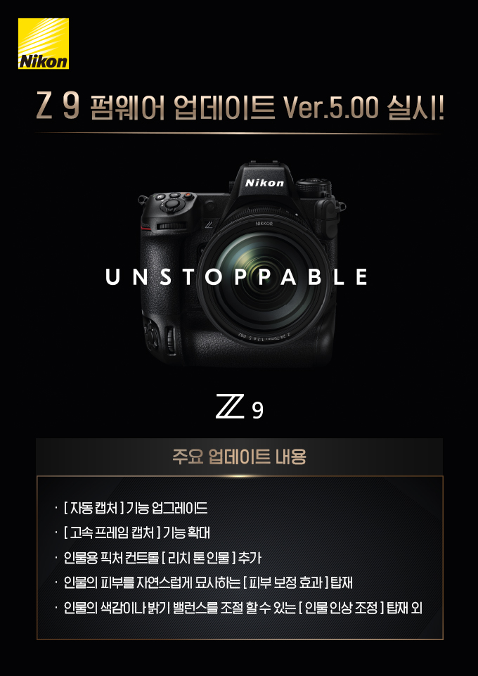 이번 펌웨어 5.00은 Z 9 출시 이후 네 번째 대규모 업데이트로, 스포츠나 인물 촬영 기능의 향상과 전문 사진작가들의 니즈를 반영해 다양한 조작성을 중심으로 개선했다.