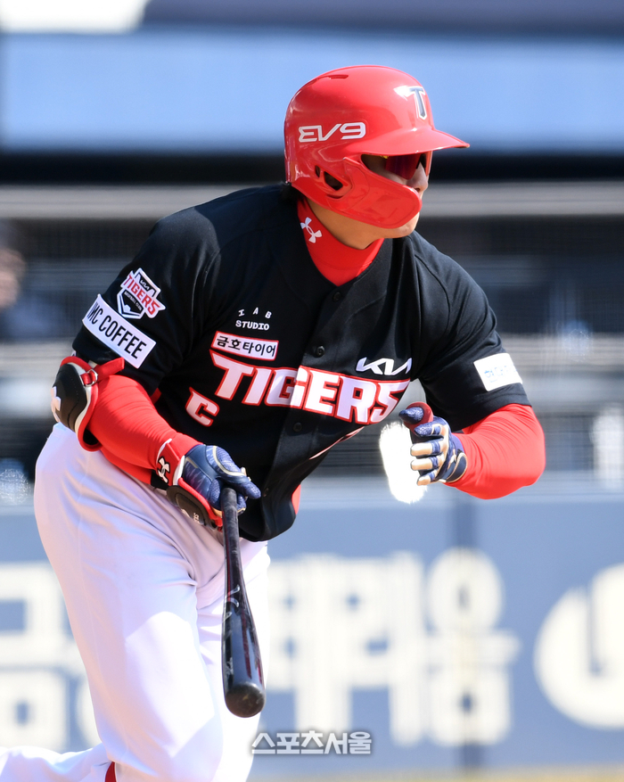 KIA 타이거즈 나성범이 14일 잠실구장에서 열린 2024 KBO리그 두산 베어스와 시범경기 4회초 2사 두산 이병헌을 상대로 안타를 치고 있다. 2024. 3. 14. 잠실 | 박진업 기자 upandup@sportsseoul.com