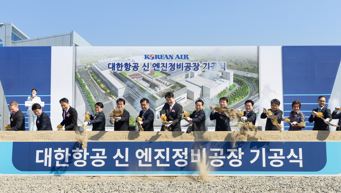 대한항공은 14일 오후 인천 중구 운북동 부지에서 신 엔진 정비 공장 기공식을 열었다. 조원태 한진그룹 회장과 임직원, 유정복 인천시장, 맹성규 더불어민주당 의원(국회 국토교통위원), 배준영 국민의힘 의원(인천 중구·강화군·옹진군), 윤원석 인천경제자유구역청장, 김정일 코오롱글로벌 대표 등 주요 내빈이 참석했다.