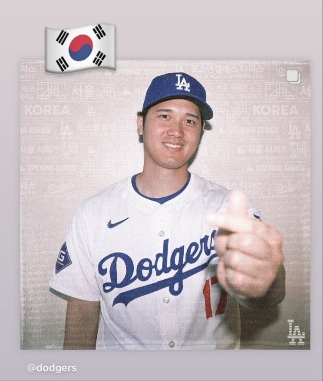 앞서 오타니는 한국 팬들을 향해 손하트 하는 사진을 올리기도 했다. 태극기도 붙였다. 서울시리즈를 앞두고 며칠 사이 활발하게 팬들과 소통한 셈이다.