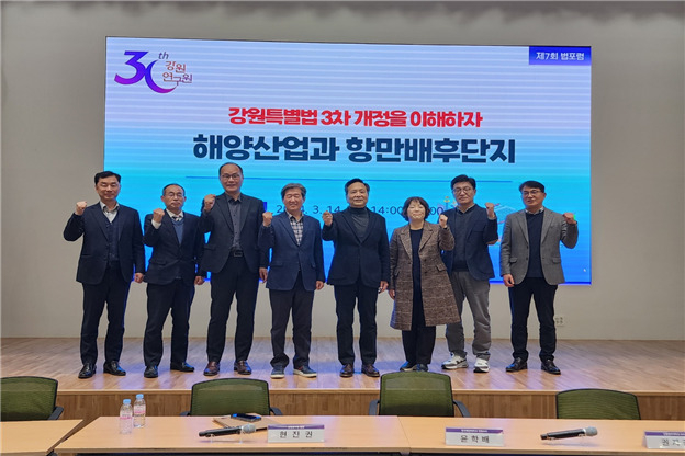 [스포츠서울ㅣ춘천=김기원기자] 강원연구원(원장 현진권)은 지난 14일(목) 14시 강원연구원 리버티홀에서 “강원특별법 3차 개정을 이해하자 : “해양산업과 항만배후단지”를 주제로 제7회 법포럼을 개최하였다.
