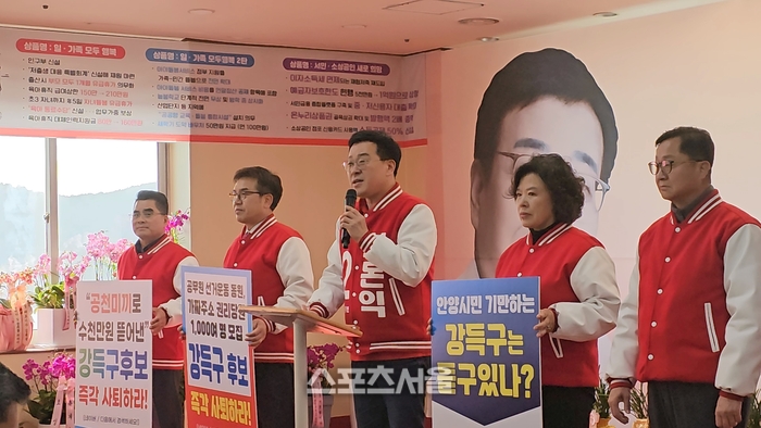 〔스포츠서울│안양=좌승훈기자〕4.10총선 경기 안양시 만안구 국민의힘 최돈익 예비후보는 15일 자신의 선거사무소에서 기자회견을 열고 상대당 예비후보인 더불어민주당 강득구 의원의 선거 부정 및 조작, 정치자금법 위반과 관련 “강 후보의 자진 사퇴와 당국의 철저하고 신속한 수사”를 촉구했다.