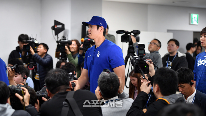다저스 오타니 쇼헤이, 프리먼, 무키베츠가 16일 고척스카이돔에서 진행되는 MLB 서울시리즈 LA다저스 공식 기자회견에 나서고 있다. . 2024.3.16. 고척 | 강영조 기자 kanjo@sportsseoul.com