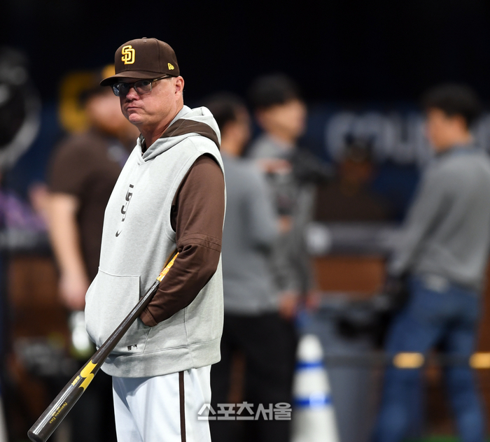 샌디에이고 마이크 실트 감독이 16일 고척스카이돔에서 진행되는 MLB 서울시리즈 샌디에이고 파드리스 첫 훈련에서 선수들을 살피고 있다. . 2024.3.16.