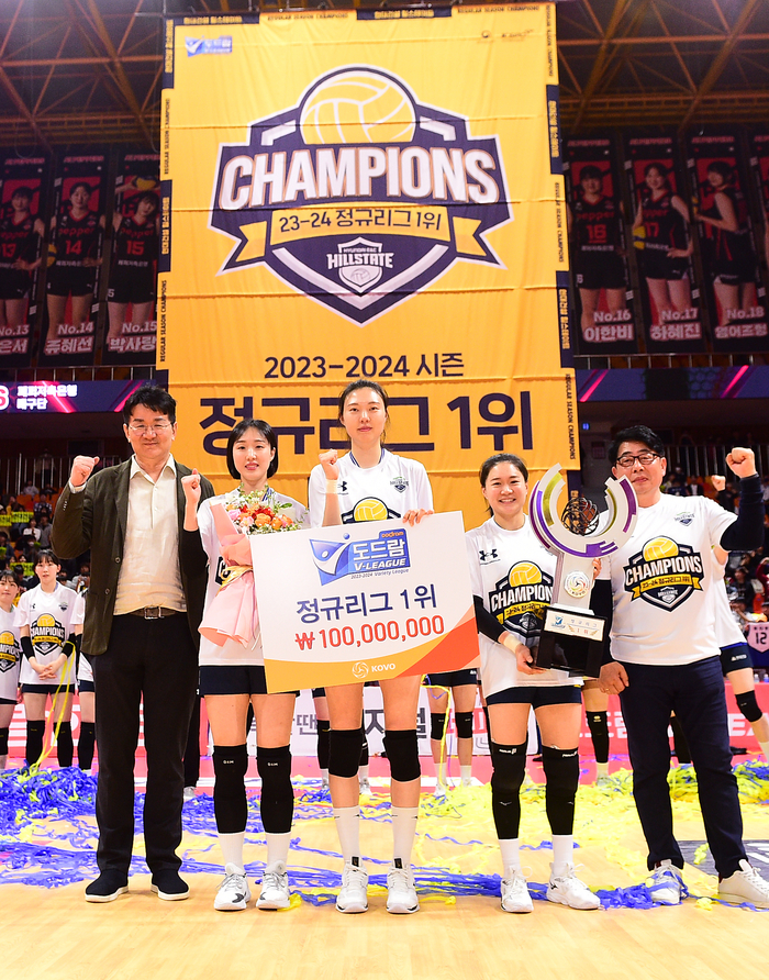 승점 3을 얻은 현대건설은 80점을 기록하며 흥국생명(79점)을 1점 차로 따돌리고 정규리그 1위를 확정했다. 지난 2010~2011시즌 이후 무려 13년 만의 챔피언결정전 직행에도 성공했다.