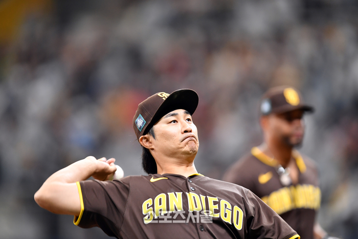 샌디에이고 김하성이 18일 서울 고척스카이돔에서 열린 ‘메이저리그 월드투어 서울 시리즈 2024’ 샌디에이고 파드리스와 LG 트윈스의 경기 4회말 수비를 마치고 들어오다 볼을 관중석으로 던져주고 있다.2024.3.18. 고척 | 강영조 기자 kanjo@sportsseoul.com