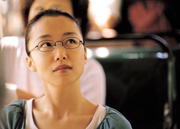 배우 전도연(정원주 역)이 은행 CCTV를 올려다보며 설경구(김봉수 역)에게 말한다. 극 중 전도연은 좁고 얇은테의 안경을 쓰고 있다.