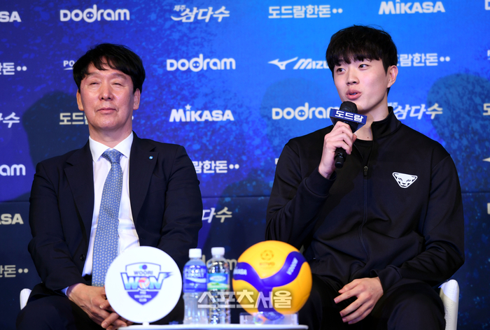 우리카드 김지한이 18일 서울 청담동 리베라호텔에서 열린 2023~2024 V-리그 포스트시즌 미디어데이에서 포스트시즌 각오를 밝히고 있다. 2024. 3. 18. 최승섭기자 thunder@sportsseoul.com