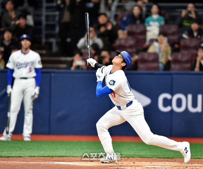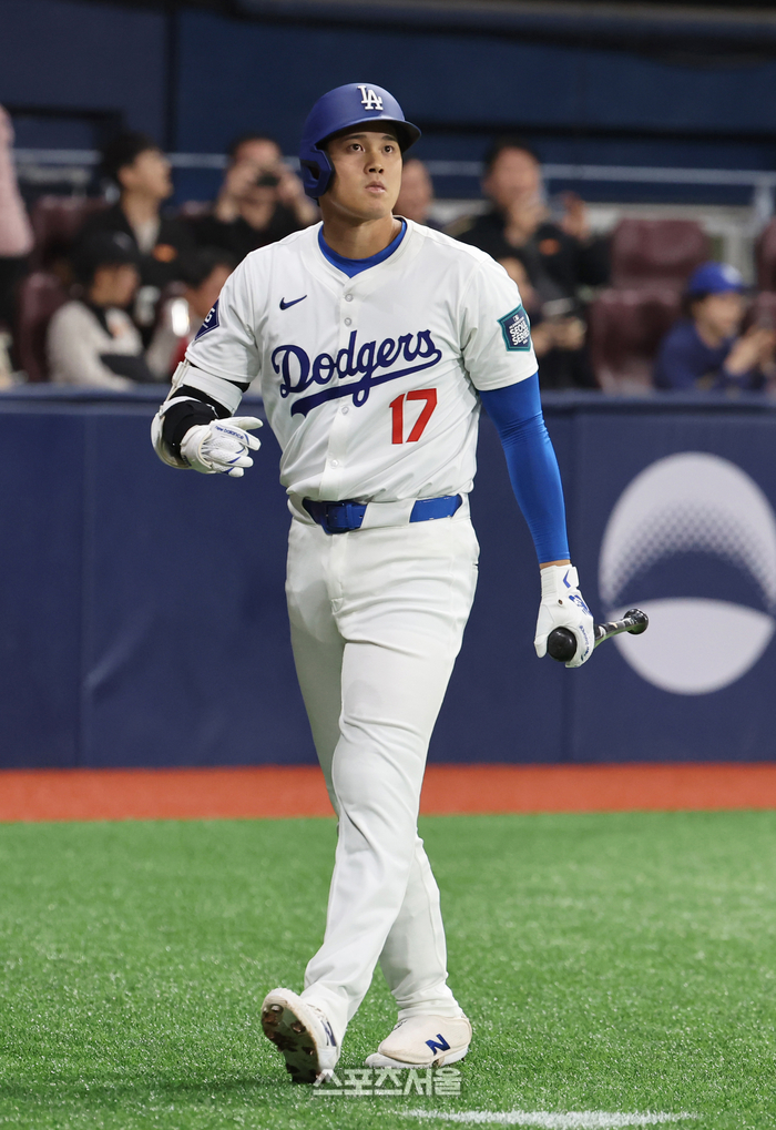마지막 타석인 4회말에도 좌투수였다. 오윤석과 마주했다. 오윤석의 초구 슬라이더에 스윙했고 빠른 타구를 만들었지만 내야를 뚫지 못했다. 대표팀 2루수 김혜성이 오타니 타구를 잡고 1루로 송구했다. 이후 오타니는 계획대로 세 타석만 소화한 후 교체됐다. 다저스는 7회말 오타니 대신 헌터 페두치아를 내보냈다.