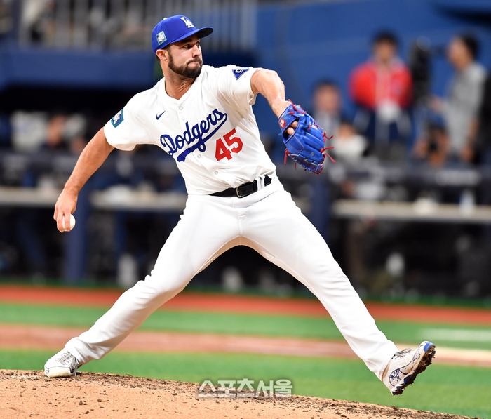 다저스 우완 파이어라이젠이 18일 서울 고척스카이돔에서 ‘메이저리그 월드투어 서울 시리즈 2024’ LA 다저스와 팀 코리아의 경기 9회초 등판해 역투하고 있다. 2024.03.18 고척 | 강영조기자 kanjo@sportsseoul.com