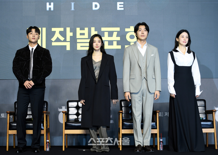 이민재, 이청아, 이무생, 이보영(왼쪽부터)이 19일 조선팰리스 서울 강남에서 열린 쿠팡플레이 ‘하이드’ 제작발표회에서 인사를 하고 있다. ‘하이드’는 어느 날 남편이 사라진 후, 그의 실종에 얽힌 비밀을 추적하며 감당하기 어려운 큰 진실과 마주하게 되는 여자의 이야기를 그린다. 2024. 3. 19. 최승섭기자 thunder@sportsseoul.com